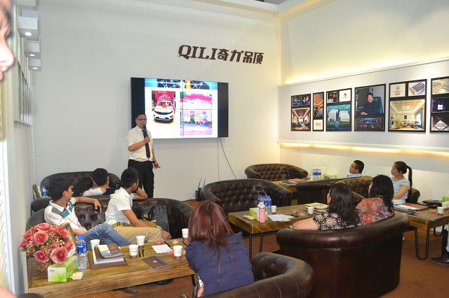 在熱烈的掌聲中,奇力的營銷總監(jiān)登臺演講,從奇力的6大優(yōu)勢開始,自產品、設計、售后等與終端門店經營息息相關的各個方面,為經銷商提供保障,無憂經營,輕松成就大商。