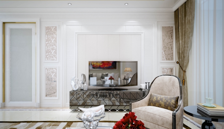 電視背景墻應與客廳裝修風格統一,作為客廳的主背景和主風景,一定要符合客廳裝修的整體風格,可以有特色但不能特立獨行。