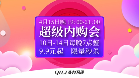 4月15日,奇力總部為大家準備了一場超級內購會,超多福利等著大家,4月10-14日,每天還有限時秒殺,所以大家要緊盯直播頁面,千萬別錯過哦!